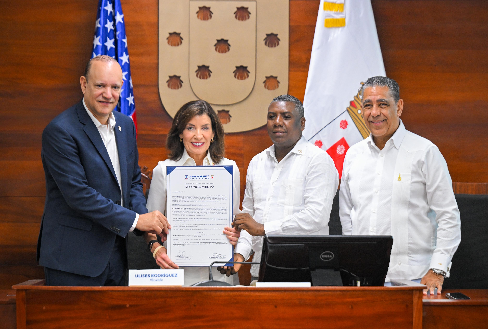 Ayuntamiento de Santiago entrega llave de la ciudad a gobernadora Kathy Hochul y declara «Hijo Distinguido» a Adriano Espaillat